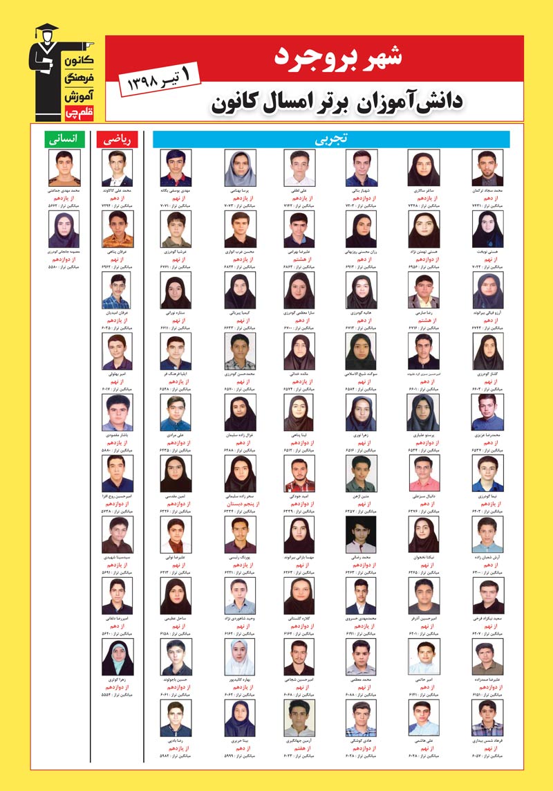 ویژه نامه ی برترها که شامل دانش آموزان برتر کنکوری سال 98 کانون در شهر بروجرد است را در ادامه مشاهده و دانلود کنید.