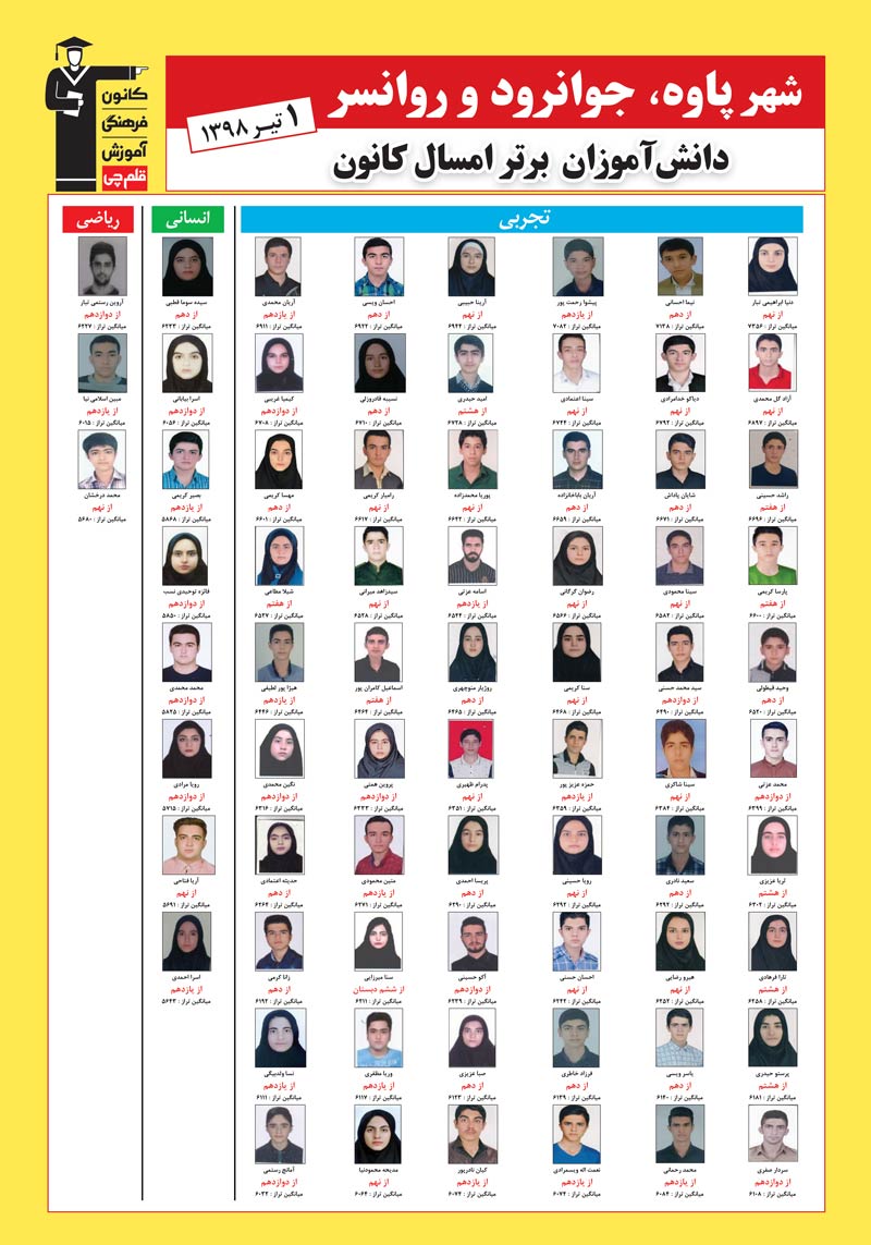 | نفرات برتر سال 98 در شهر پاوه و جوانرود و جوانسر |