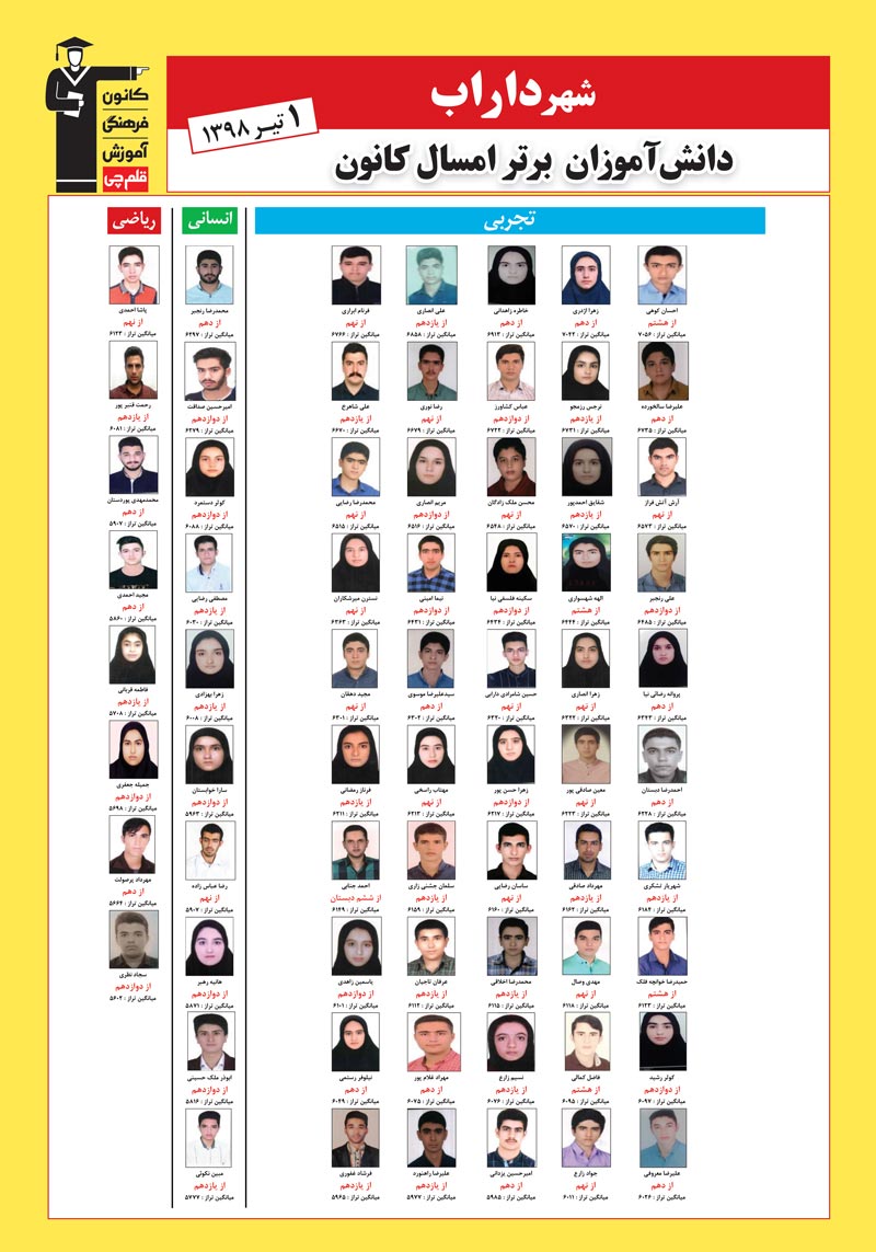 ویژه نامه ی برترها که شامل دانش آموزان برتر کنکوری سال 98 کانون در شهر داراب است را در ادامه مشاهده و دانلود کنید.
