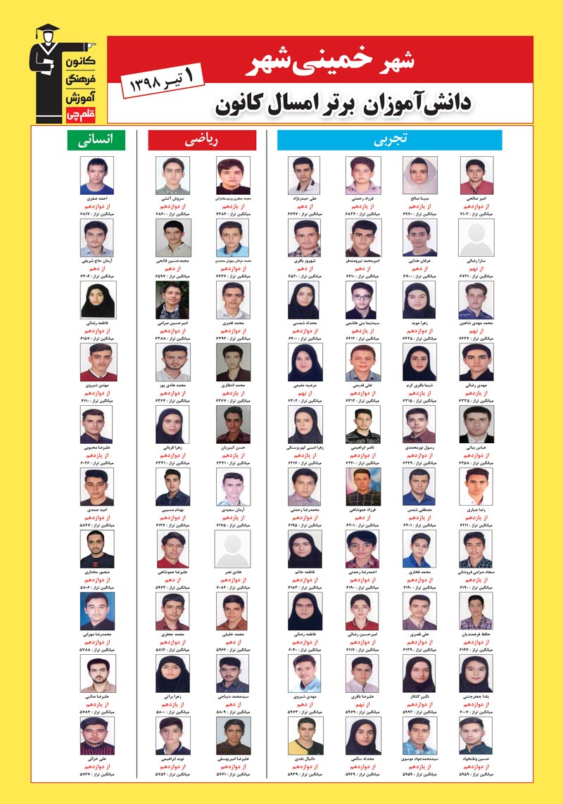 | نفرات برتر سال 98 در شهر خمینی شهر |