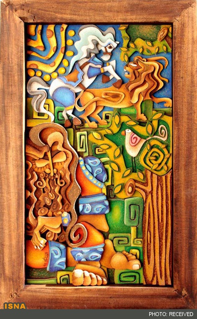 وی درباره این اثر هنری گفت: فریمها پس از ساخت، با پاستیل روغنی رنگآمیزی شدهاند که به دلیل همخوانی آن با آثار اساطیری و قدیمی ایرانی در آن از رنگهای اصیل ایرانی مانند اکر و ابی فیروزهای استفاده شده است.