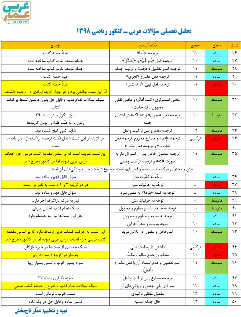 عمار تاجبخش: تحلیل درس عربی کنکور 98 رشته ریاضی