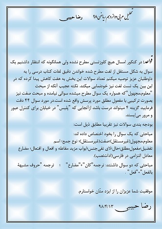 تحلیل درس عربی در کنکور 98 رشته ریاضی توسط رضا حبیبی