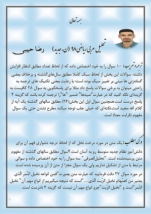رضا حبیبی: تحلیل درس عربی کنکور 98 ریاضی نظام جدید