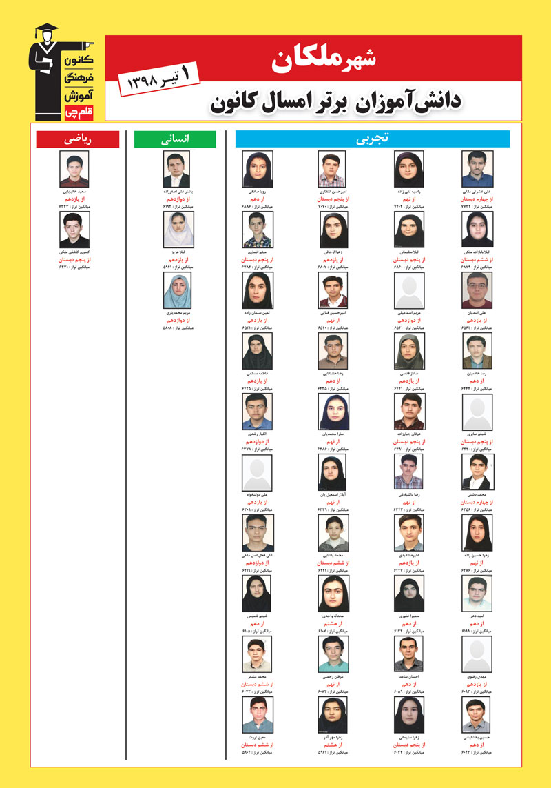 ویژه نامه ی برترها که شامل دانش آموزان برتر کنکوری سال 98 کانون در شهر ملکان است را در ادامه مشاهده و دانلود کنید.