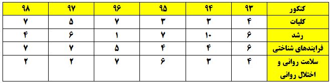 همانطور که در جدول بالا ملاحظه میکنید فصلهای کلیات و فرایندهای شناختی در ۳ سال اخیر مورد توجه طراحان کنکور سراسری
