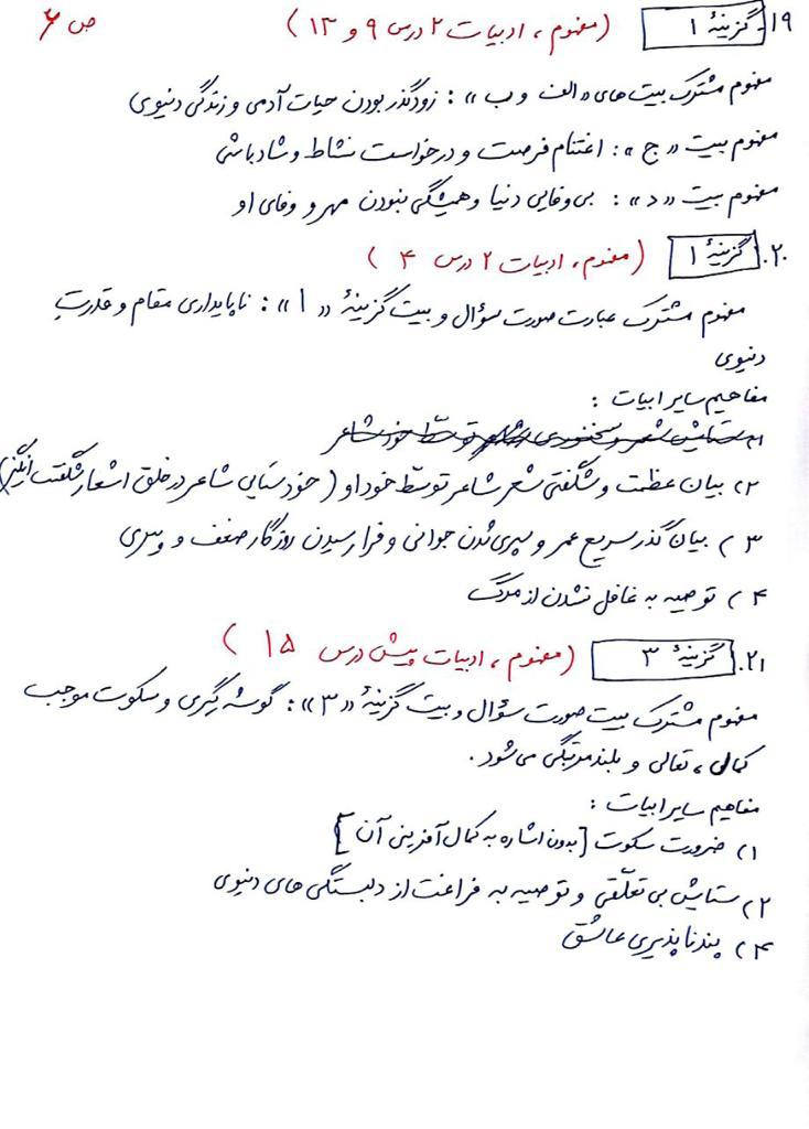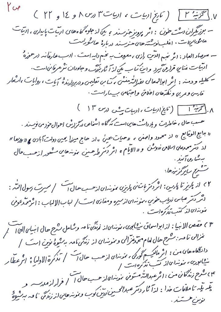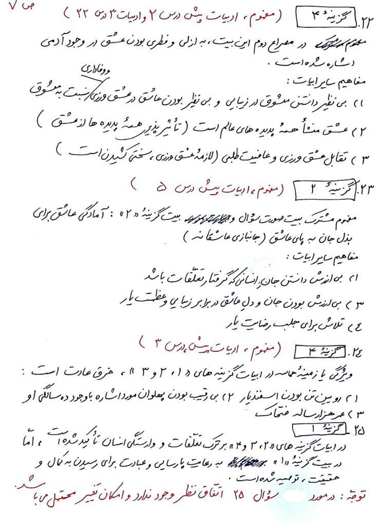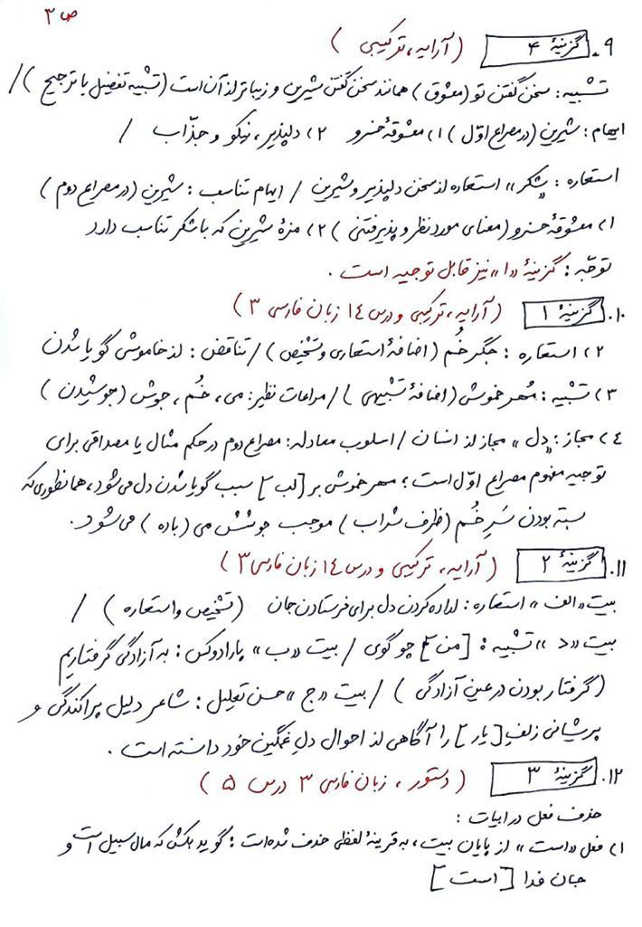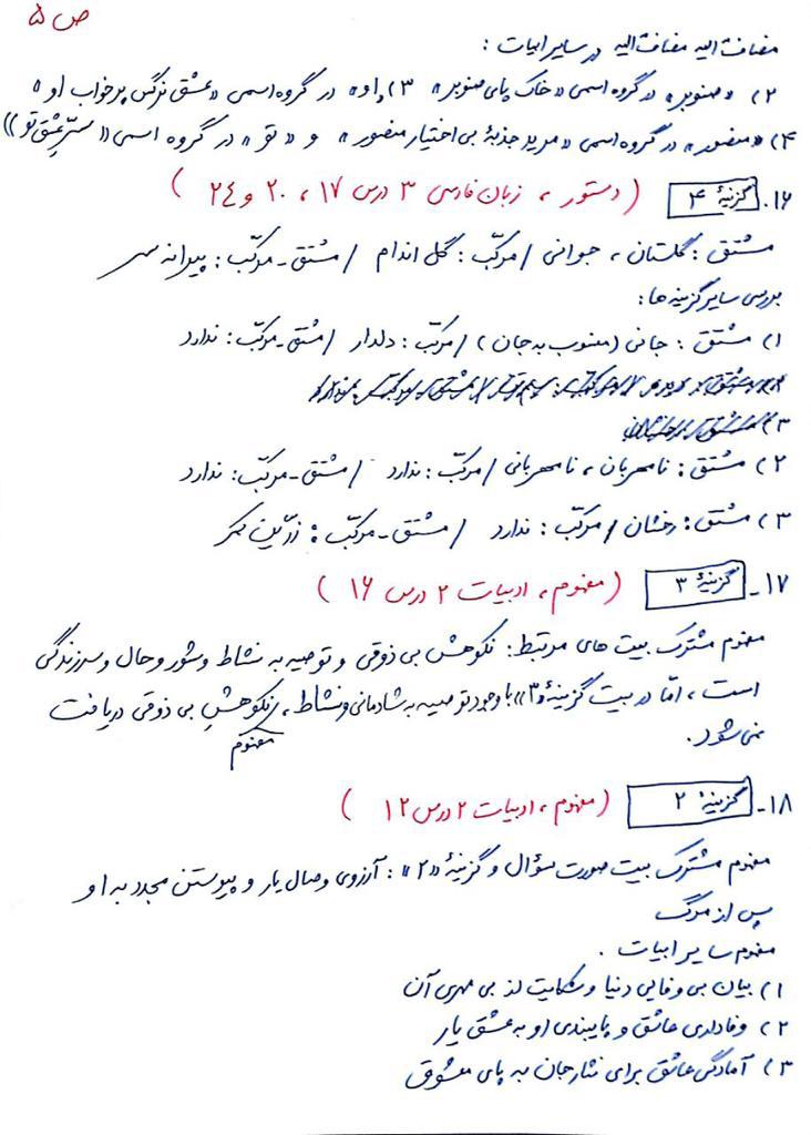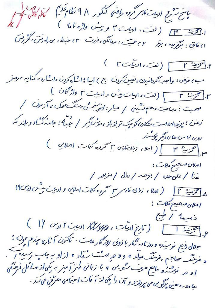 پاسخ تشریحی ادبیات کنکور ریاضی 98 نظام قدیم