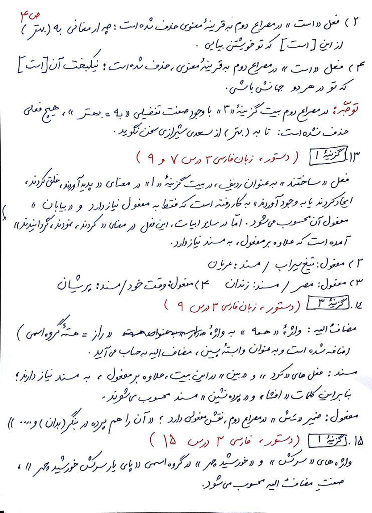 کاظم کاظمی- پاسخ تشریحی ادبیات رشته ریاضی- نظام قدیم