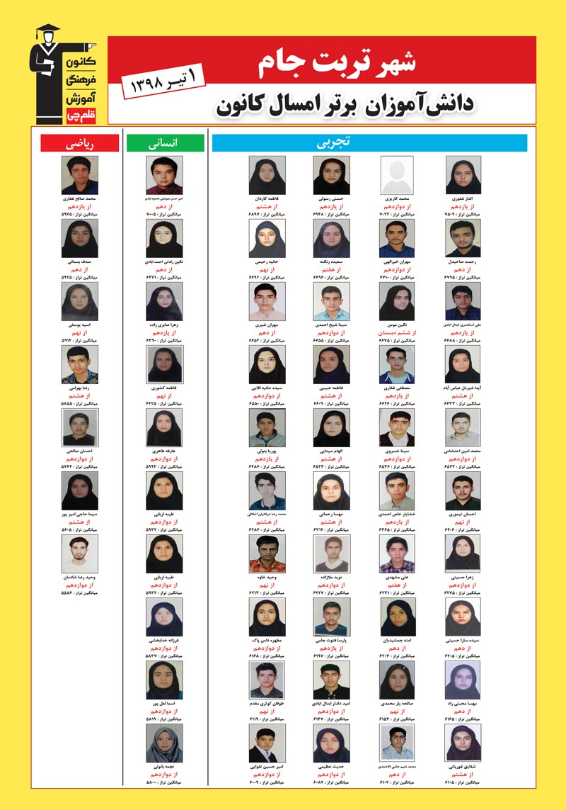 ویژه نامه ی برترها که شامل دانش آموزان برتر کنکوری سال 98 کانون در شهر تربت جاماست را در ادامه مشاهده و دانلود کنید.