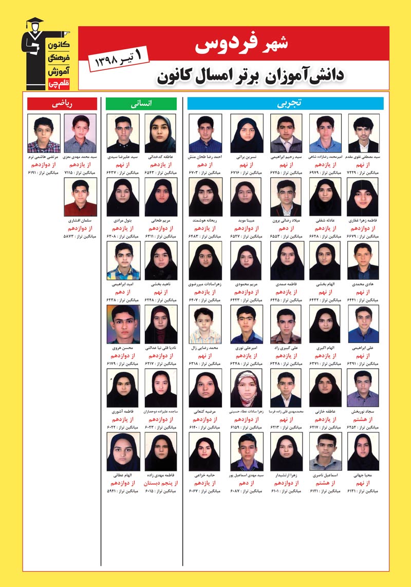 ویژه نامه ی برترها که شامل دانش آموزان برتر کنکوری سال 98 کانون در شهر فردوس است را در ادامه مشاهده و دانلود کنید.