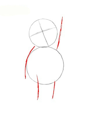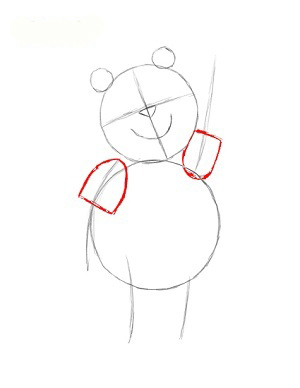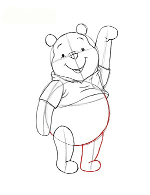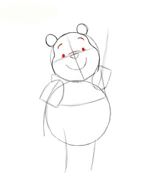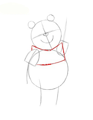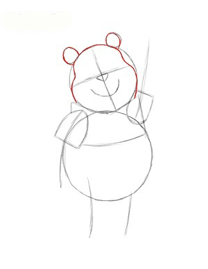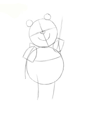 ابتدا دو تا دايره يکي کوچک براي سر و ديگري بزرگتر براي بدن پو ميکشيم.