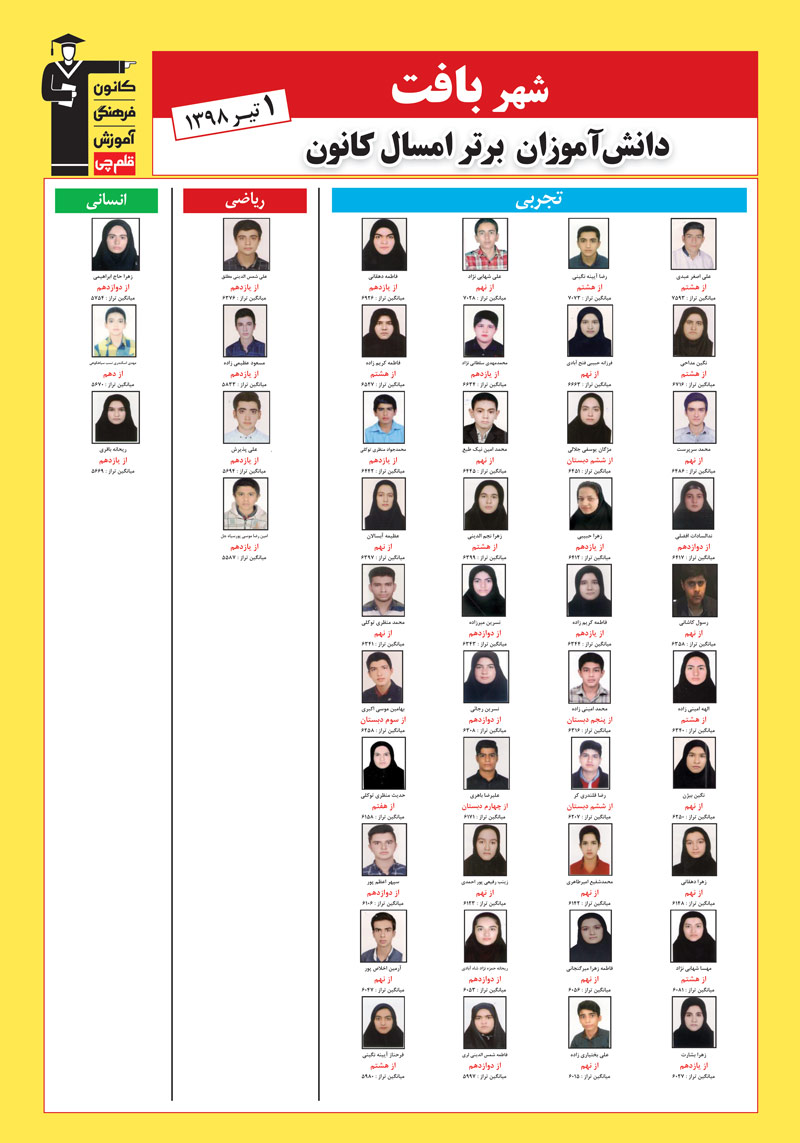 ویژه نامه ی برترها که شامل دانش آموزان برتر کنکوری سال 98 کانون در شهر بافت است را در ادامه مشاهده و دانلود کنید.