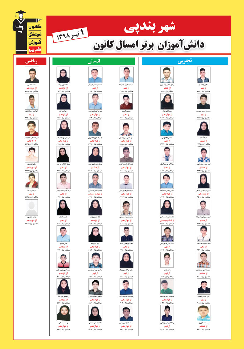 ویژه نامه ی برترها که شامل دانش آموزان برتر کنکوری سال 98 کانون در شهر بندپی است را در ادامه مشاهده و دانلود کنید.