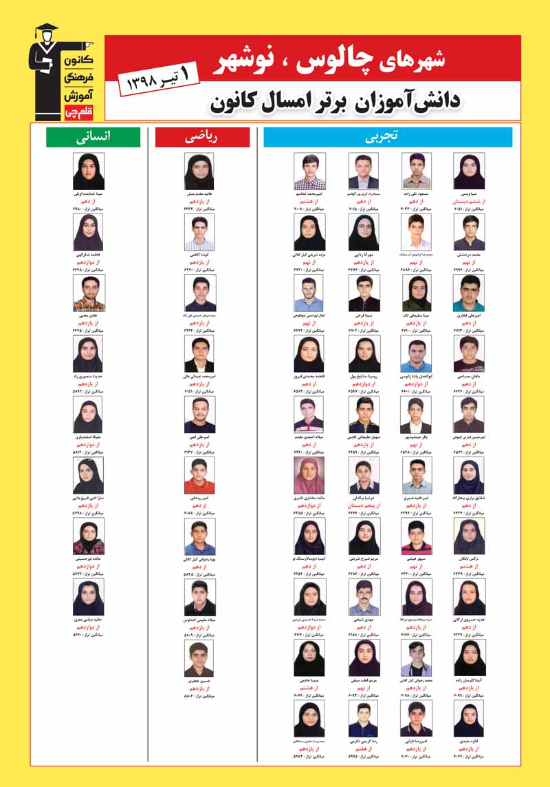 | نفرات برتر سال 98 در شهر چالوس و نوشهر |