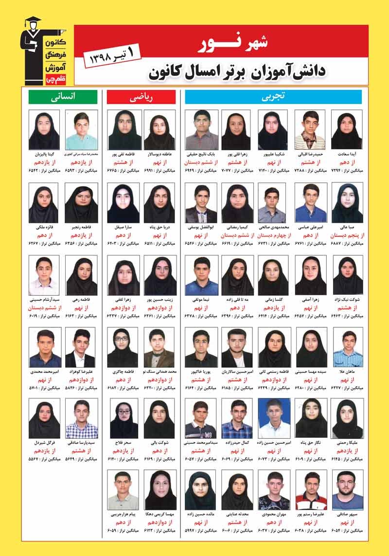ویژه نامه ی برترها که شامل دانش آموزان برتر کنکوری سال 98 کانون در شهر نور است را در ادامه مشاهده و دانلود کنید.