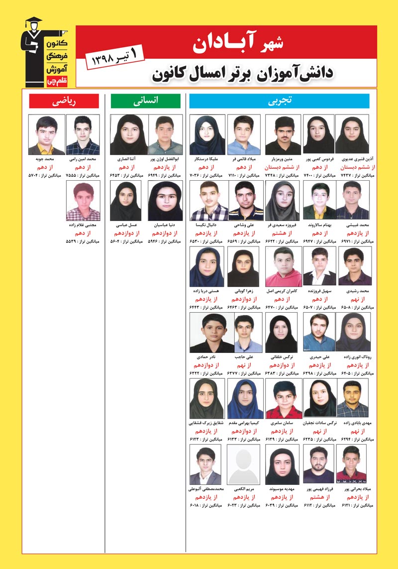 | نفرات برتر سال 98 در شهر آبادان |