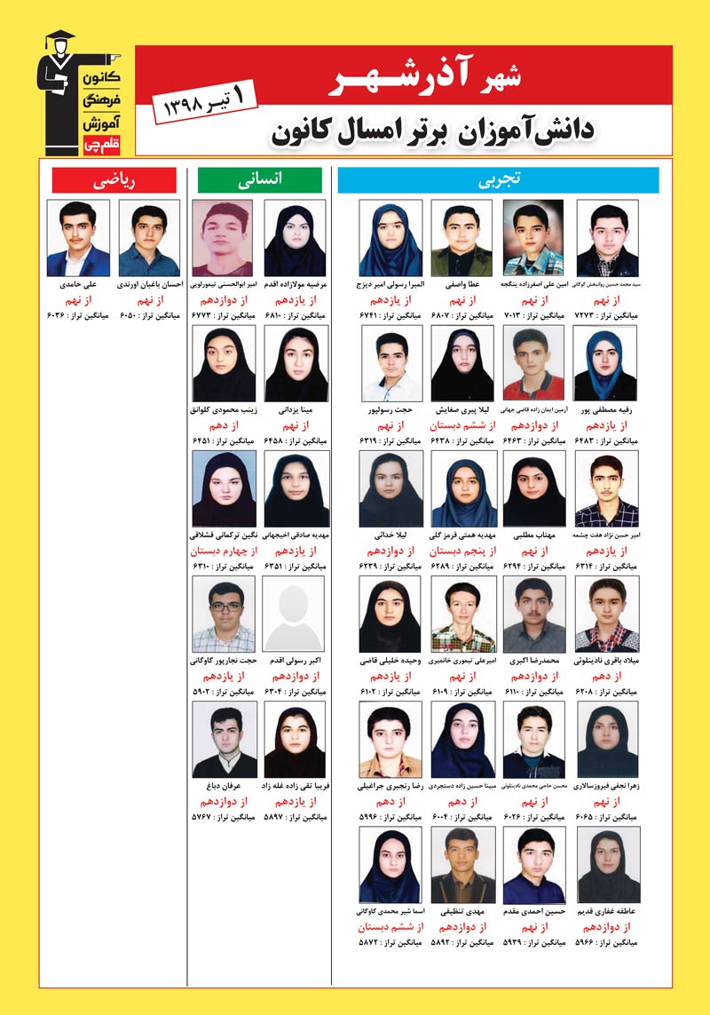 | نفرات برتر سال 98 در شهر آذرشهر |