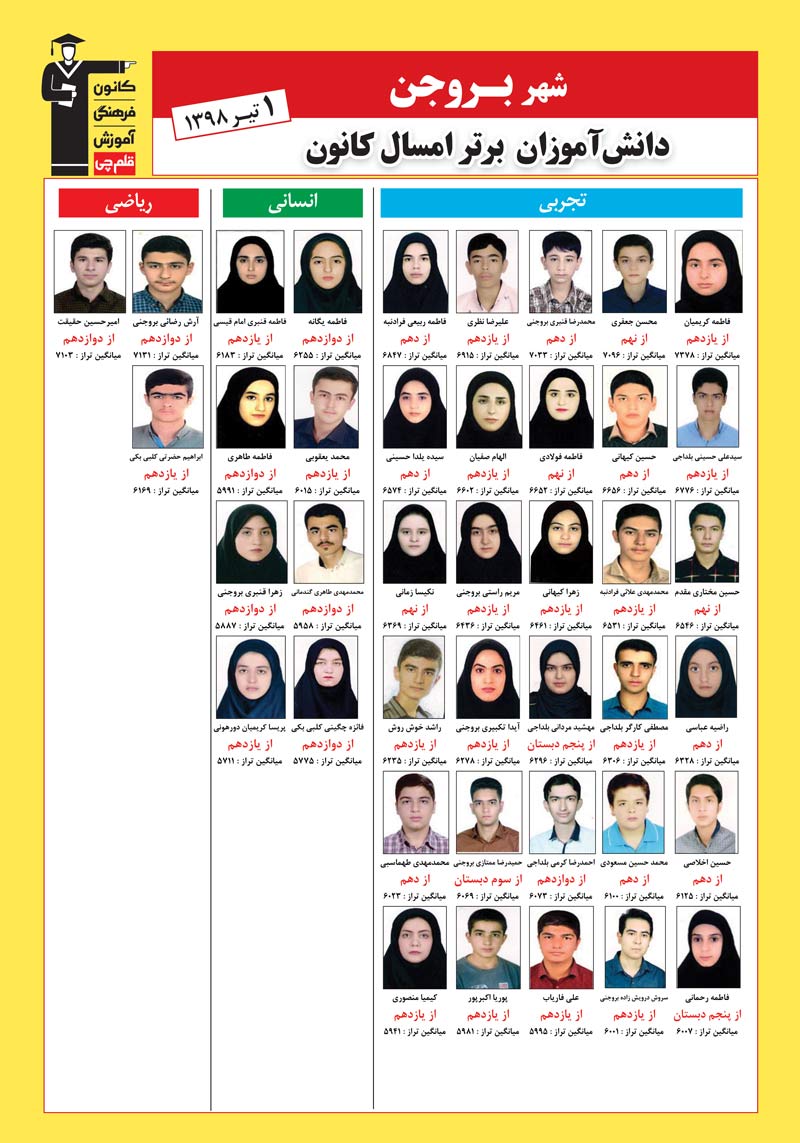 ویژه نامه ی برترها که شامل دانش آموزان برتر کنکوری سال 98 کانون در شهر بروجن است را در ادامه مشاهده و دانلود کنید.