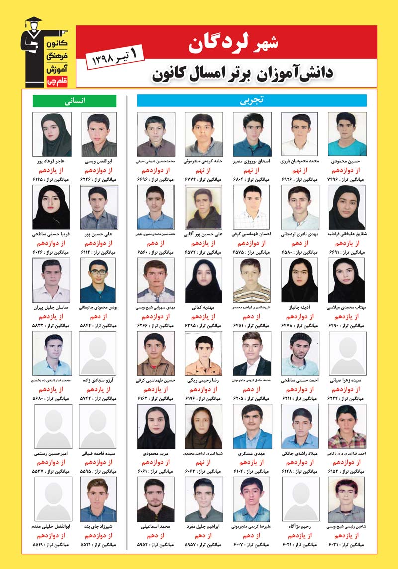 برای مشاهده نفرات برتر سایر گروه های شهر لردگان و پروفایل شخصی برترها برروی لینک زیر کلیک کنید.