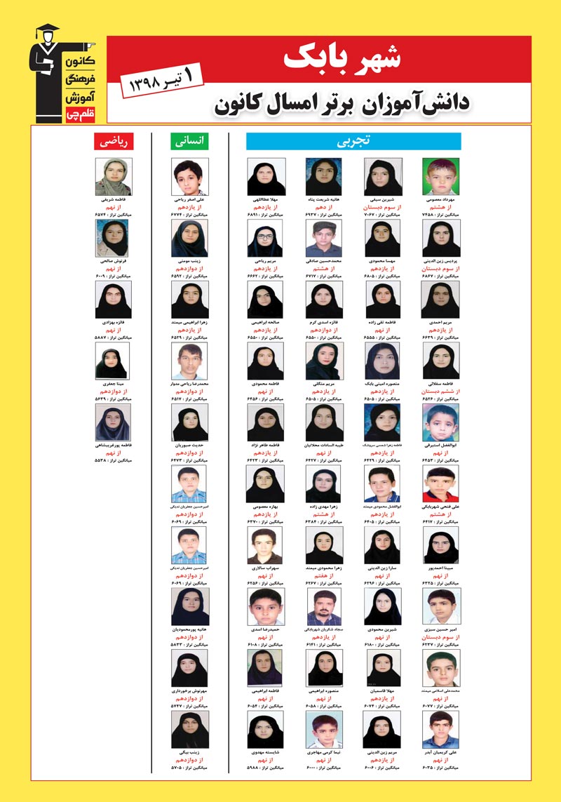 ویژه نامه ی برترها که شامل دانش آموزان برتر کنکوری سال 98 کانون در شهر بابک است را در ادامه مشاهده و دانلود کنید.