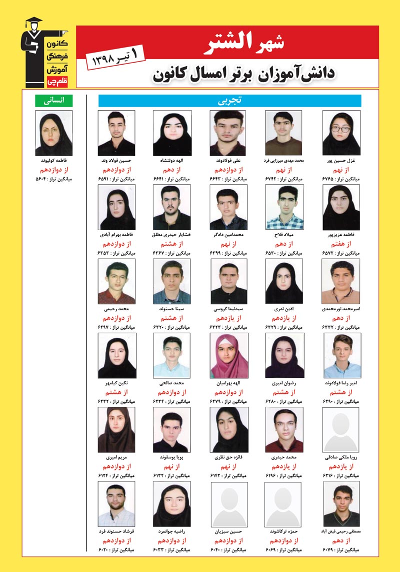 ویژه نامه ی برترها که شامل دانش آموزان برتر کنکوری سال 98 کانون در شهر الشتر است را در ادامه مشاهده و دانلود کنید.