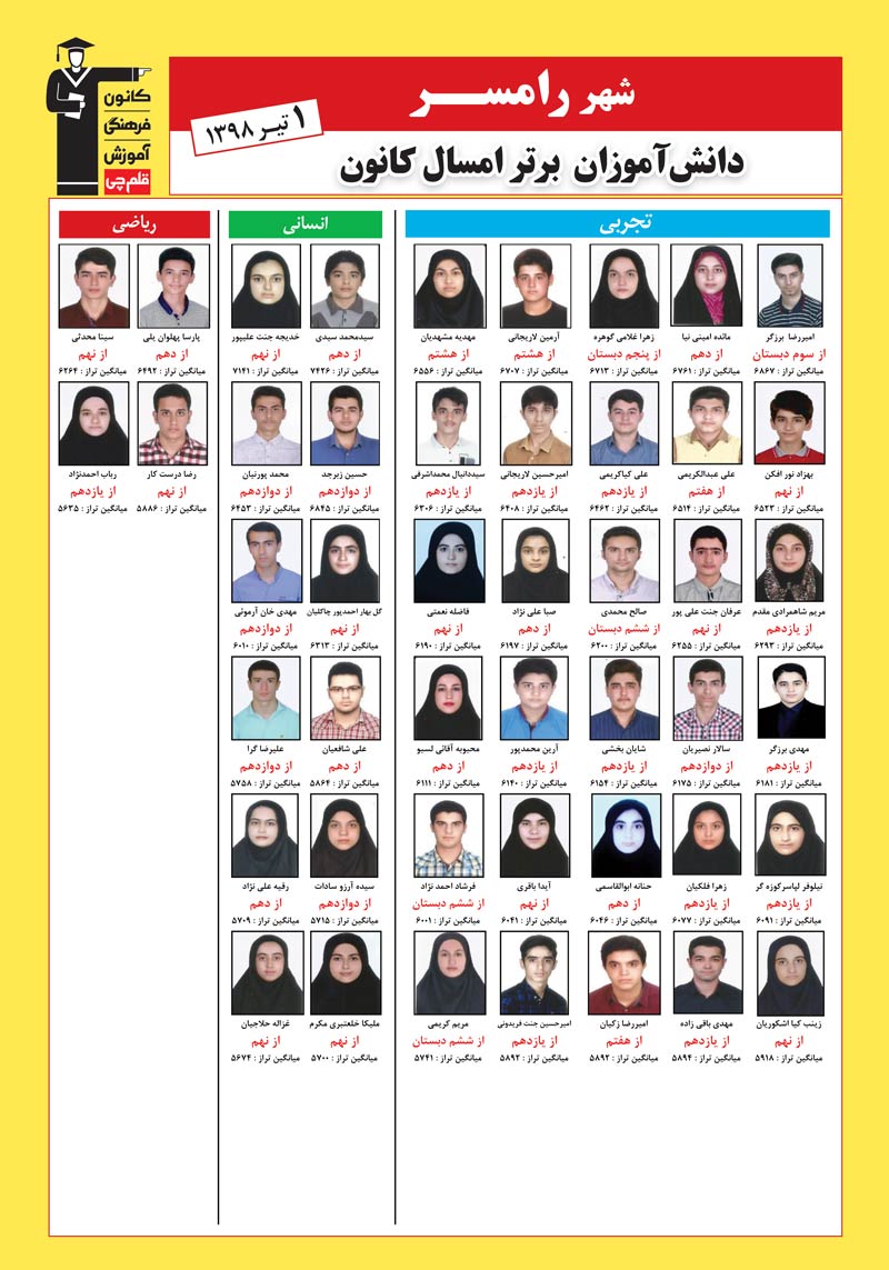 ویژه نامه ی برترها که شامل دانش آموزان برتر کنکوری سال 98 کانون در شهر رامسر است را در ادامه مشاهده و دانلود کنید.