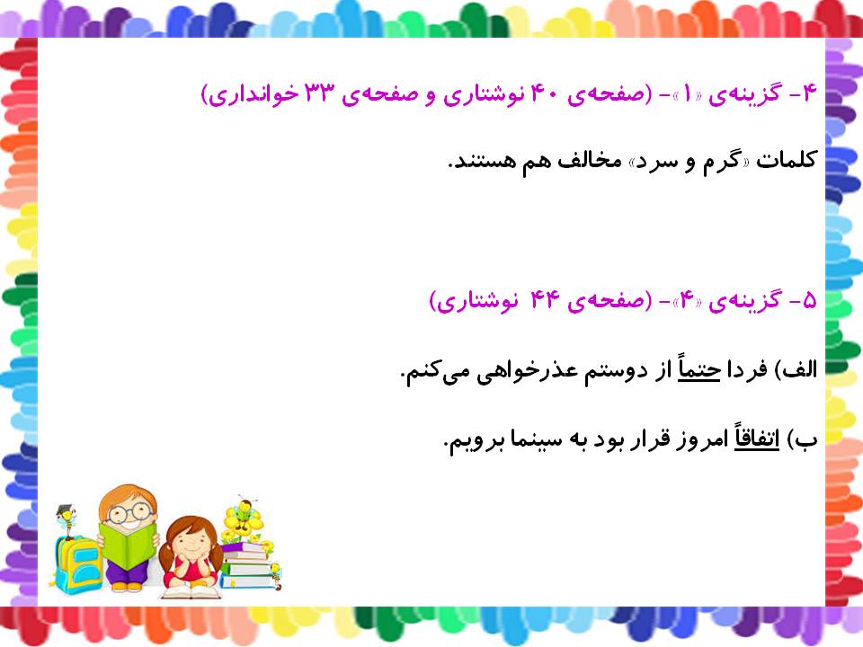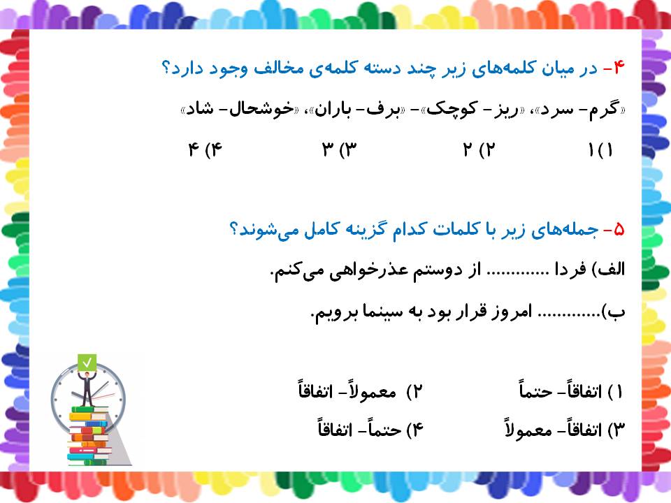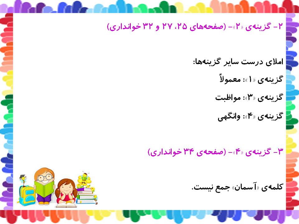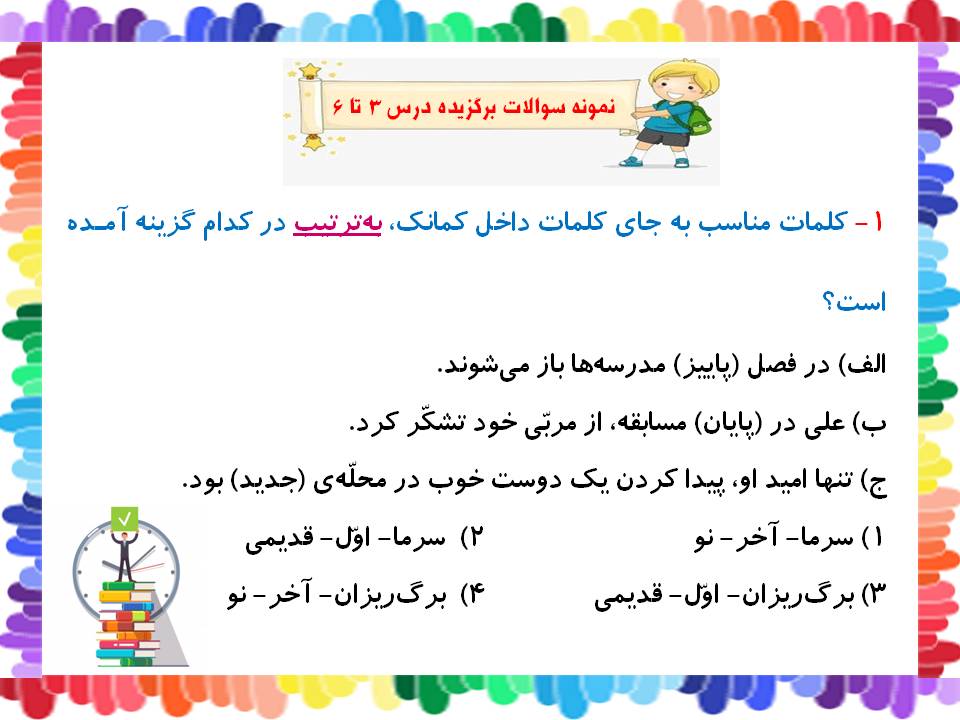 همراهان عزیز دوم دبستان در تصاویر زیر نمونه سوالات درس سوم تا ششم فارسی دوم دبستان را برای شما قراردادیم.دانشآموزان در کنار خودارزیابی میتوانند با نحوه سوالاتامتحانی آشناشوند.