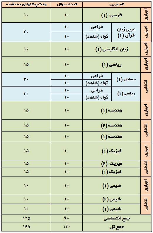 تعداد سوالات هر درس و زمان بندی آزمون 4 مرداد یازدهم ریاضی