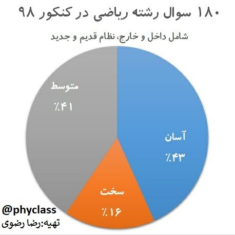 بیشتر از ۸۰درصد سوال ها بسیار تکراری بودند یعنی یا در کتاب یا در کنکورهای قبل و یا در میان سوالات پرتکرار کتاب ها و جزوه های سطح کشور بودند.