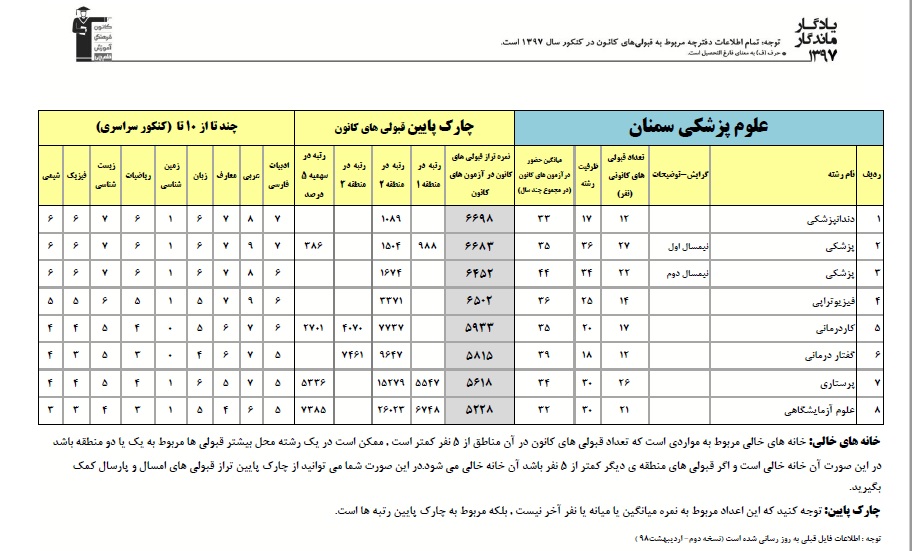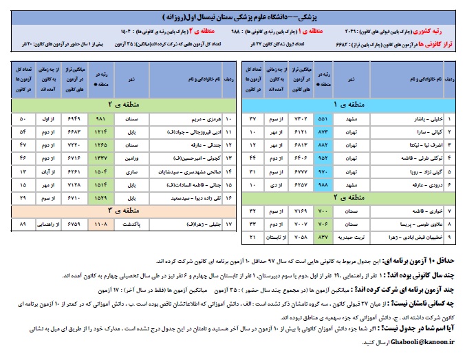 یادگار ماندگار : قبولی های کانونی دانشگاه های سمنان و علوم پزشکی سمنان در همه رشته ها در سال 97 را در ادامه مشاهده کنید.فایل با کیفیت قبولی های سال 97 را در قسمت فایل های ضمیمه دانلود کنید.