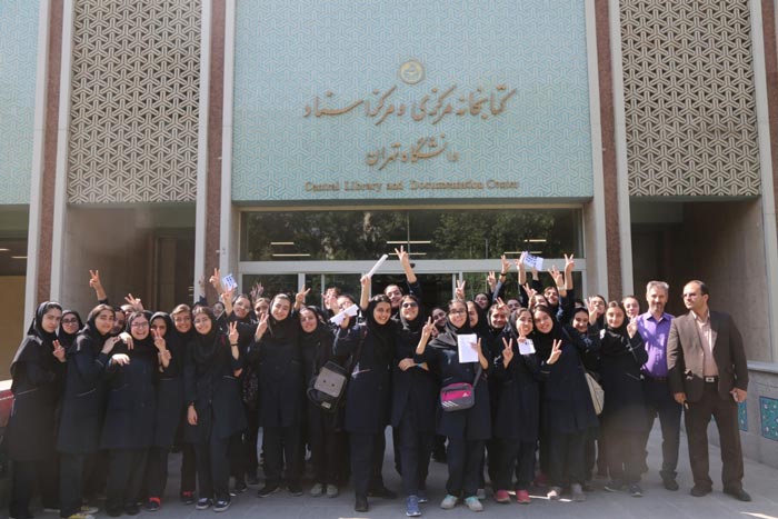 عکس یادگاری دانش آموزان پس از بازدید از کتابخانه مرکزی دانشگاه
