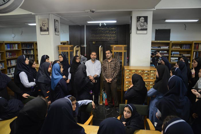 توضیحات مسئولان کتابخانه مرکزی دانشگاه برای دانش آموزان