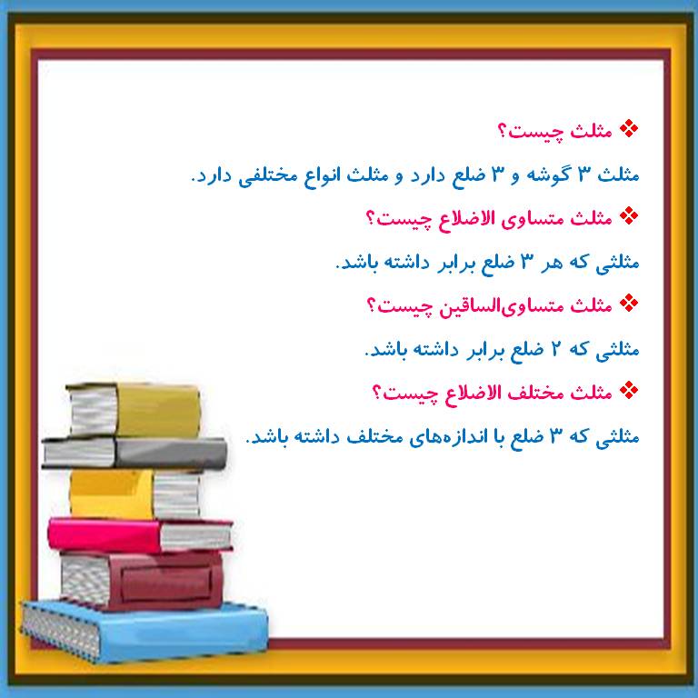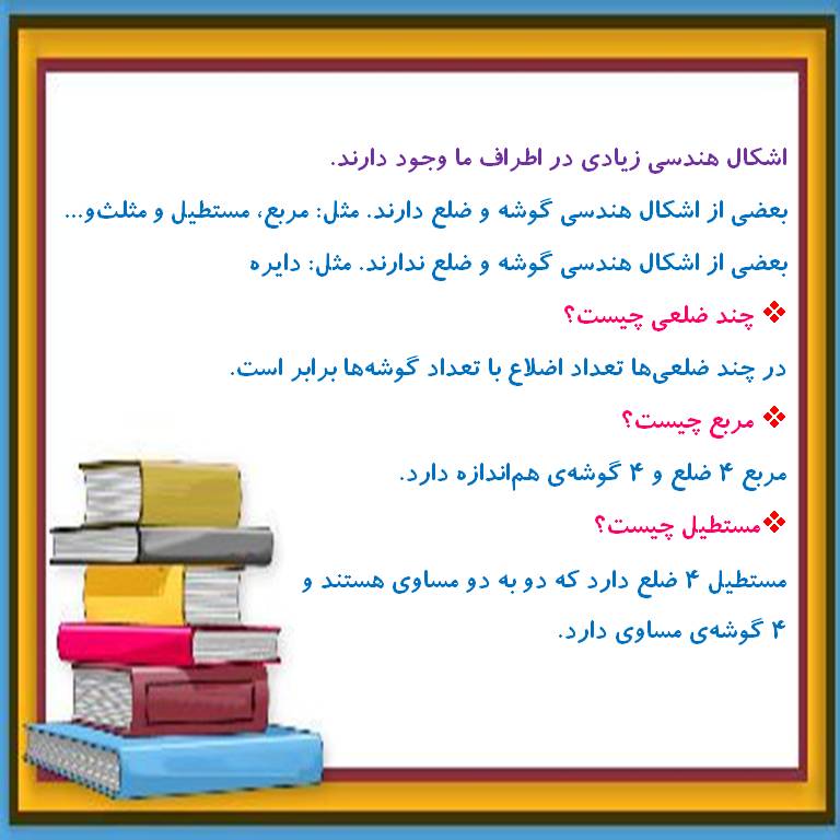 درسنامه ریاضی - درسنامه - مبحث اشکال هندسی- ریاضی دوم دبستان- ریاضی دوم ابتدایی- ریاضی-نکات مهم درس ریاضی