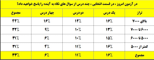 در آزمون امروز در قسمت انتخابی ، چند درس از سوال های نگاه به آينده را پاسخ خواهيد داد؟