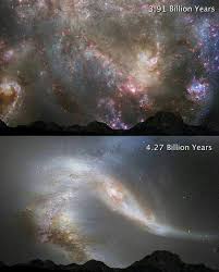 اکنون تصاویری ساختگی از آنچه که به هنگام برخورد این دو کهکشان رخ میدهد به نمایش گذاشته شده است و نشان میدهد که آسمان زمین به هنگام نزدیک شدن و برخورد کهکشان به چه شکل خواهد بود.