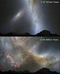 طبق گفته دانشمندان، کهکشانهای راه شیری و آندرومدا حدود 4.5 میلیارد سال آینده با یکدیگر برخورد خواهند کرد.