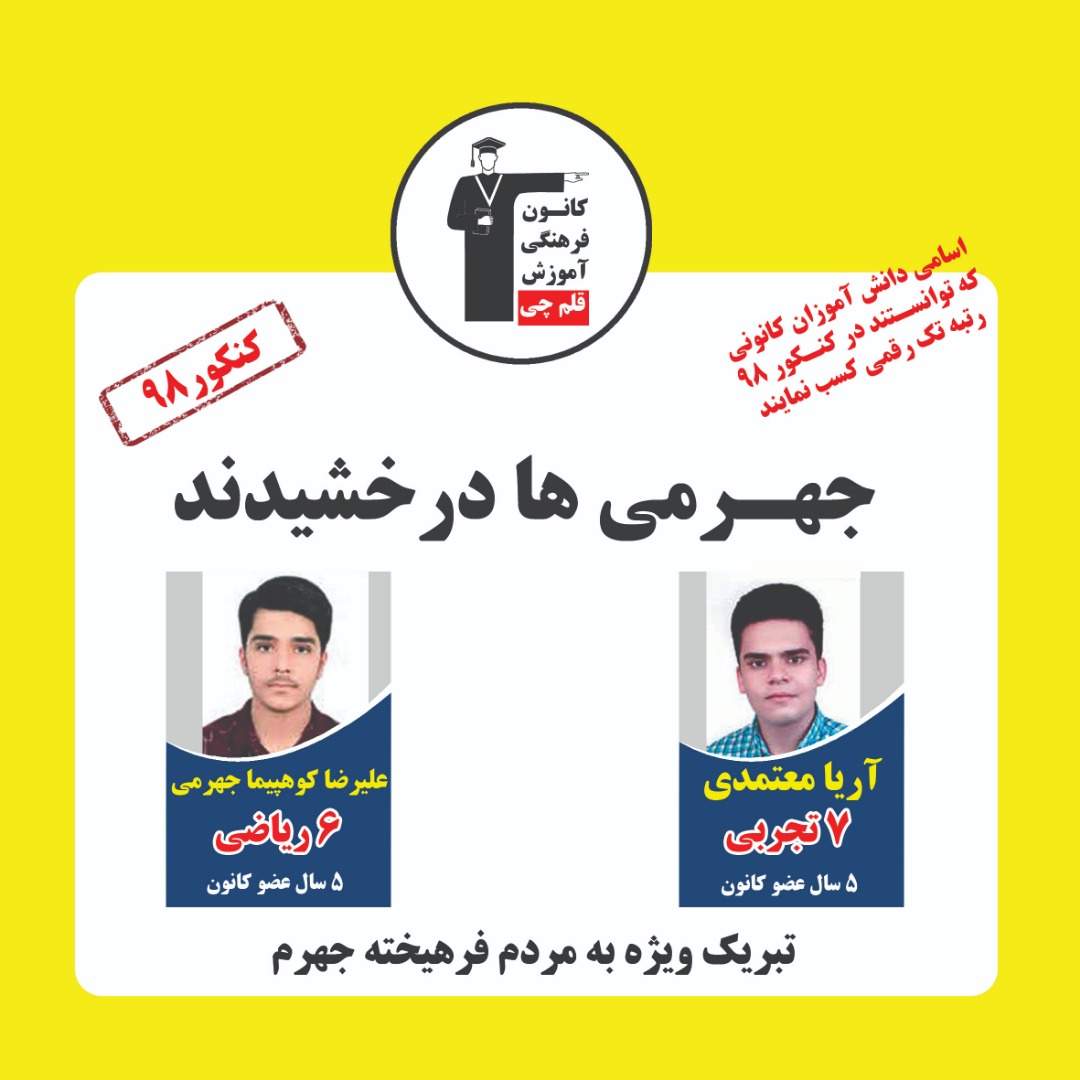 رتبههای برتر کنکور 98 جهرم را در زیر مشاهده کنید .