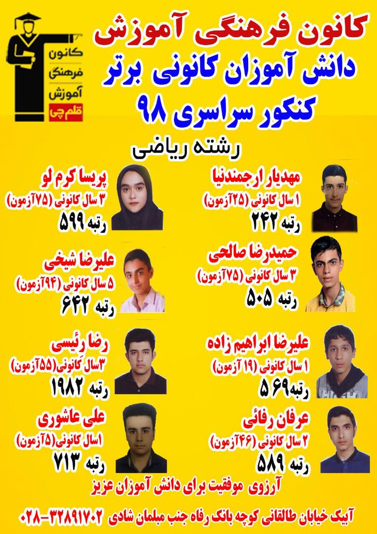 با چه رتبه ای در چه رشته ای قبول شدند ؟(ریاضی)