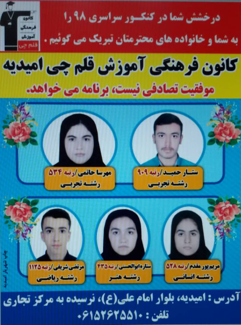 رتبههای برتر کنکور 98 امیدیه را در زیر مشاهده کنید .