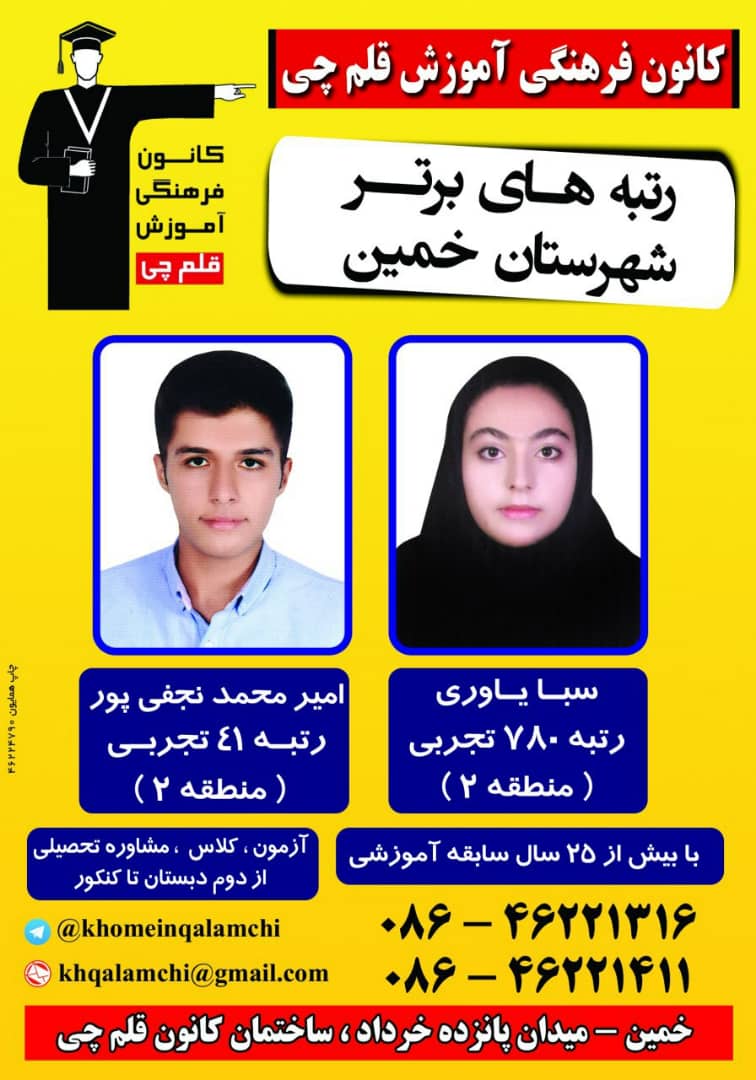 رتبه های برتر کنکور 98 در نمایندگی خمین را در زیر مشاهده کنید ....