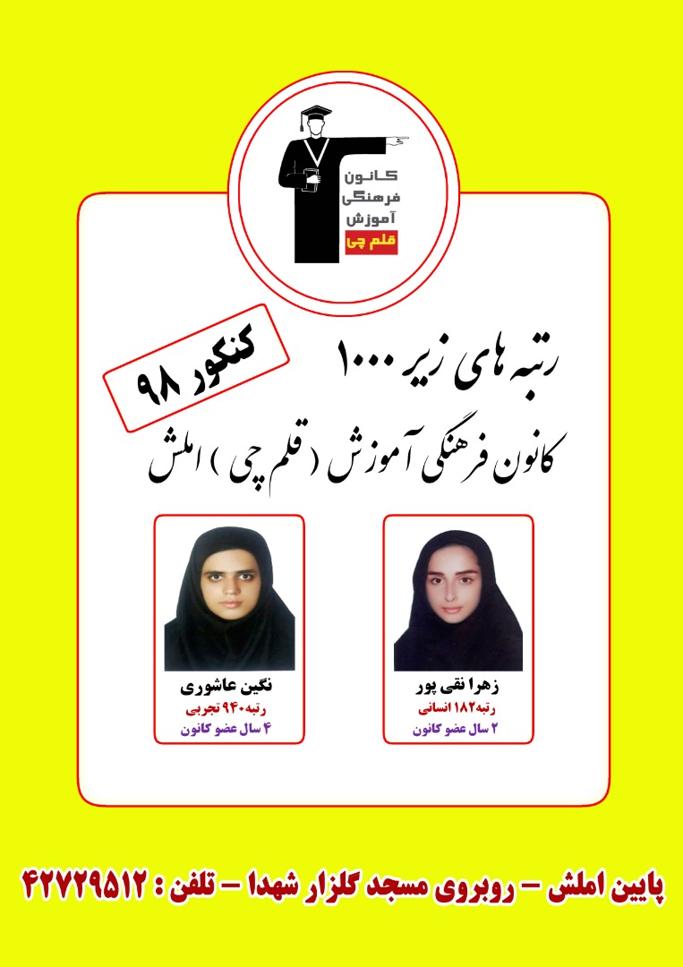رتبههای برتر کنکور 98 در نمایندگی املش را در زیر مشاهده کنید ....