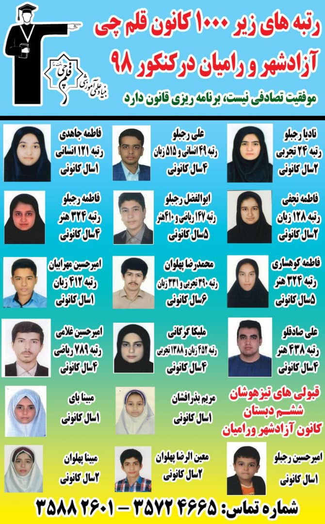رتبه های برتر کنکور 98 در نمایندگی آزادشهر و رامیان را در زیر مشاهده کنید ....