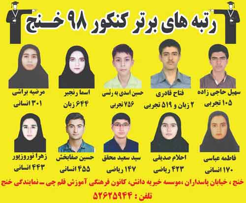 رتبه های برتر کنکور 98 در نمایندگی دشتستان را در زیر مشاهده کنید ....