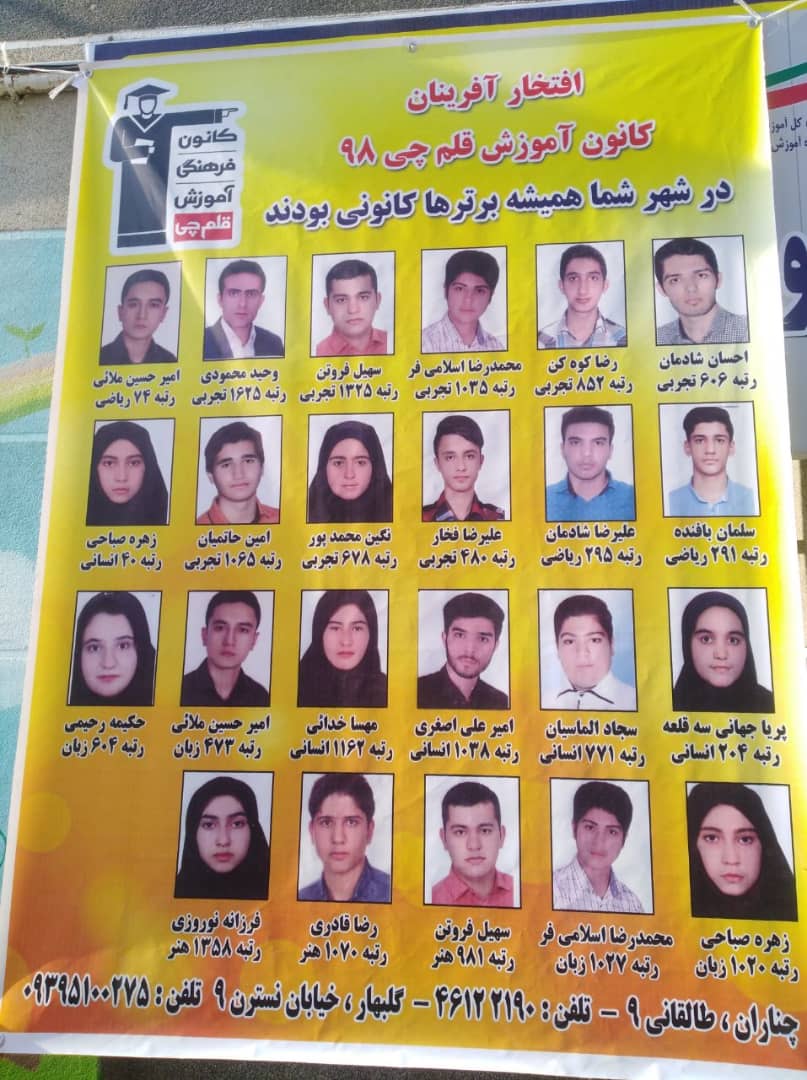رتبههای برتر کنکور 98 در نمایندگی چناران را در زیر مشاهده کنید ....