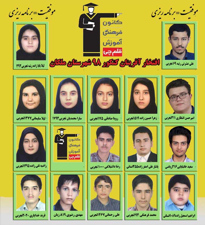 رتبههای برتر کنکور 98 ملکان را در زیر مشاهده میکنید....