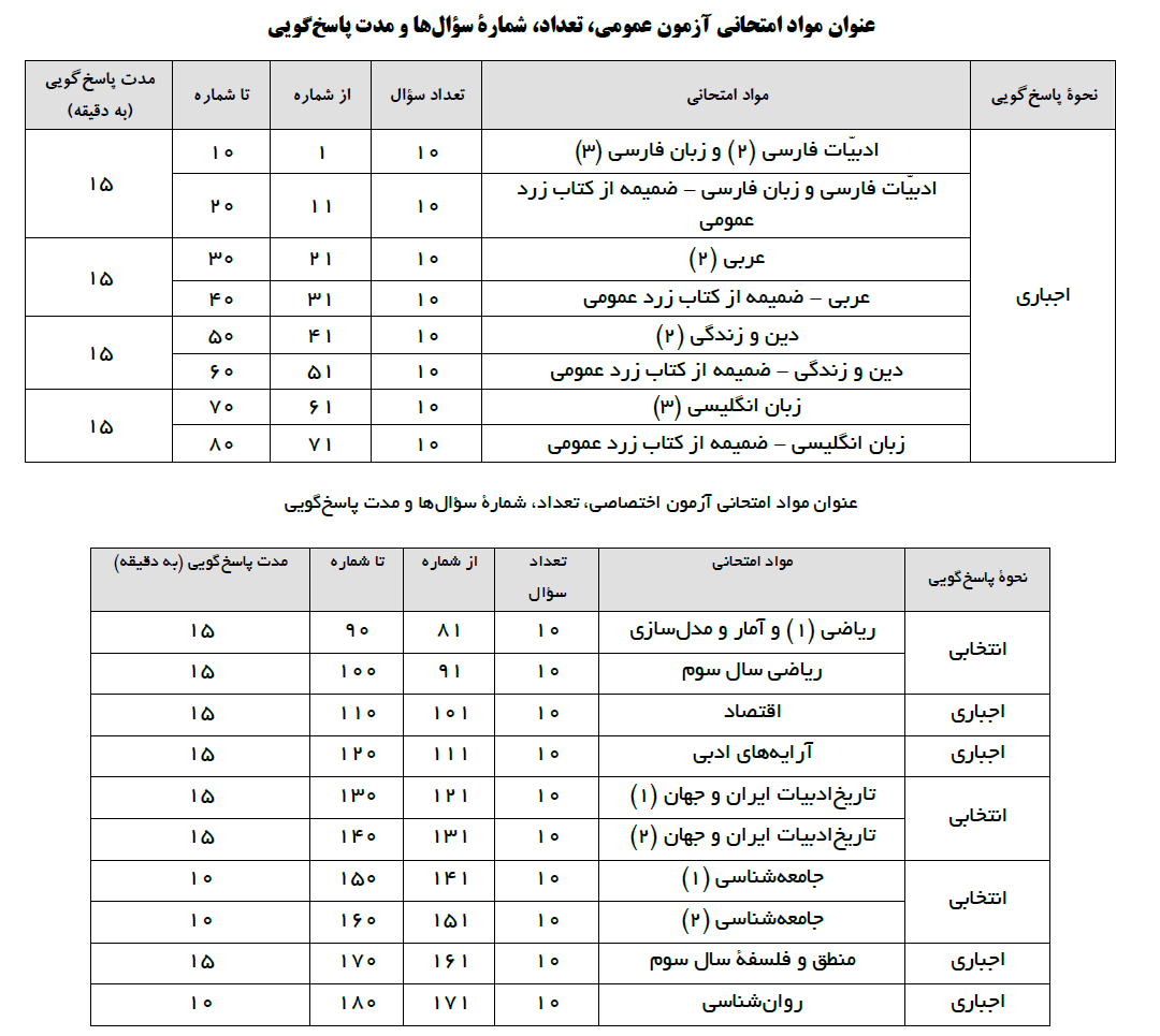 ویژگیهای آزمون 1 شهریور انسانی نظام قدیم تعداد سوالات هر درس و ...