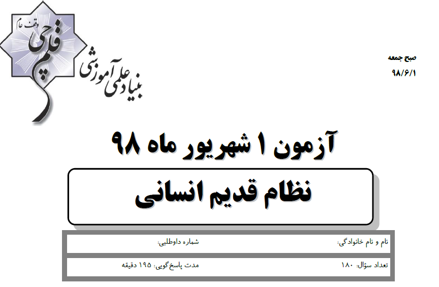 ویژگیهای آزمون 1 شهریور نظام قدیم انسانی