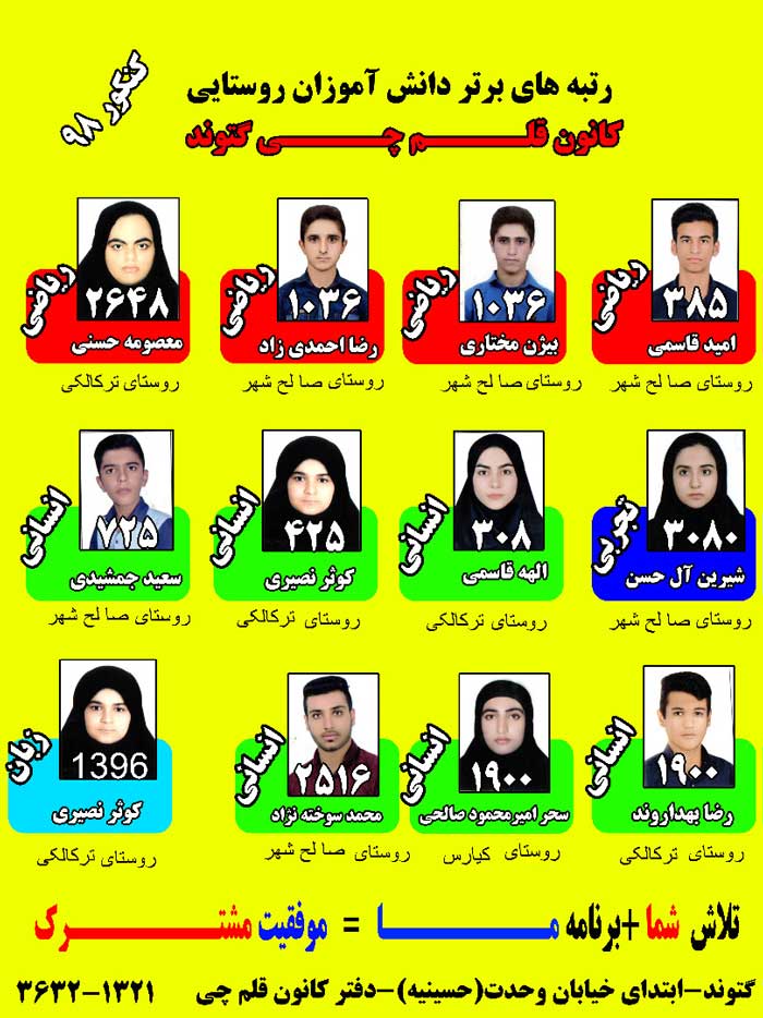 درخشش دانش آموزان روستایی گتوند در کنکور 98 را در زیر مشاهده می کنید