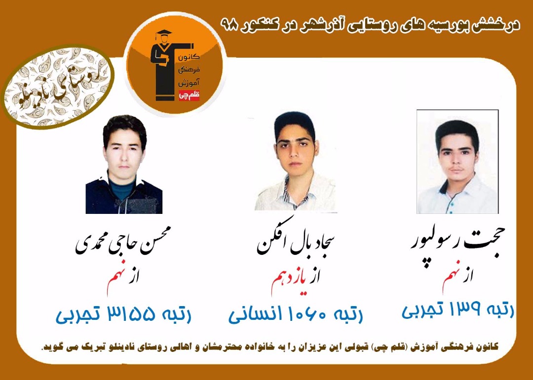 درخشش دانش آموزان روستایی آذرشهر در کنکور 98 را در زیر مشاهده میکنید
