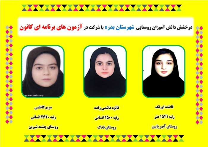 درخشش دانش آموزان روستایی بدره در کنکور 98 را در زیر مشاهده میکنید